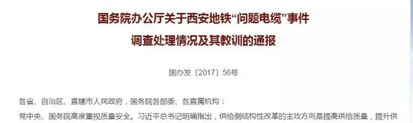 也就在同一天,(6月26日)國(guó)務(wù)院辦公廳也發(fā)布《關(guān)于西安地鐵“問(wèn)題電纜”事件調(diào)查處理情況及其教訓(xùn)的通報(bào)》(國(guó)辦發(fā)〔2017〕56號(hào))中四次提及"最低價(jià)中標(biāo)"問(wèn)題。