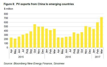 3月份,非經(jīng)合組織國(guó)家采購(gòu)的中國(guó)光伏產(chǎn)品達(dá)7.22億美元,是2015年1月以來(lái)的月度最高。