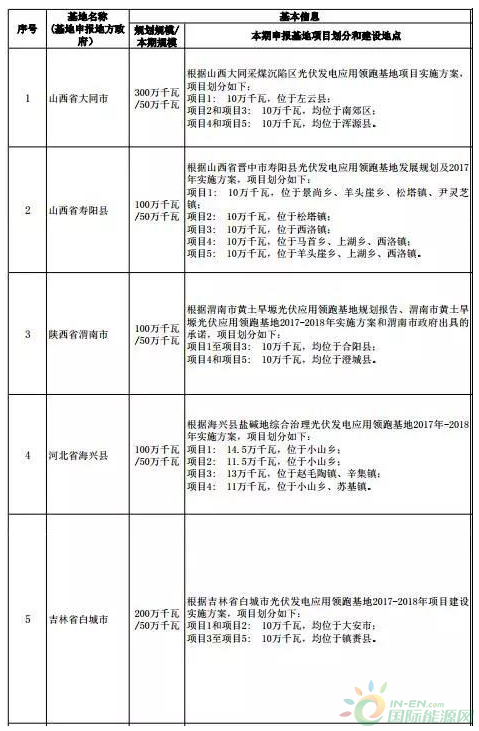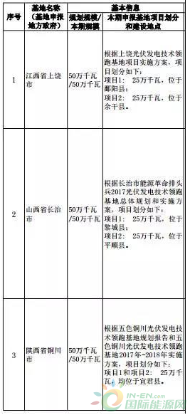 11月22日,國(guó)家能源局公布了第三批光伏發(fā)電領(lǐng)跑基地?cái)M入選名單。山西省大同市、山西省壽陽(yáng)縣、陜西省渭南市、河北省海興縣、吉林省白城市、江蘇省泗洪縣、青海省格爾木市、內(nèi)蒙古自治區(qū)達(dá)拉特旗、青海省德令哈市