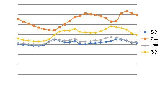 春、秋、冬三季午峰一般出現(xiàn)在每天11時左右,11-13時之間負(fù)荷呈下降態(tài)勢,并于12-13時之間達(dá)到午間負(fù)荷的最低值;夏季午峰一般出現(xiàn)在13時,13-15時負(fù)荷下降趨勢不明顯。