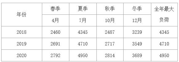 預(yù)計2018-2020年我省全社會最大負(fù)荷分別為4345、4710、4950萬千瓦。綜合考慮歷史負(fù)荷曲線、天氣、經(jīng)濟(jì)發(fā)展特征等因素,預(yù)測“十三五”后三年春夏秋冬四季最大負(fù)荷如表1所示。