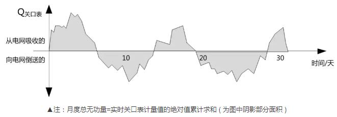 眾所周知,真正的功率因數(shù)其實(shí)是一個(gè)瞬時(shí)值,只不過電網(wǎng)公司考核月度功率因數(shù)時(shí),進(jìn)行了時(shí)間上的累積,考核的是月平均功率因數(shù)。如果我們能夠讓無功功率實(shí)時(shí)處于最小值,即下圖中的曲線幅值盡量趨于無窮小,那么最終月度總無功量(即陰影部分面積)也將趨于無窮小,那么月度功率因數(shù)將趨于1,符合電網(wǎng)公司要求。