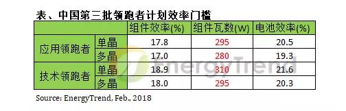 EnergyTrend最新《先進(jìn)技術(shù)供應(yīng)鏈發(fā)展報(bào)告》指出,在中國(guó)第三批領(lǐng)跑者計(jì)劃的效率指標(biāo)引導(dǎo)下,業(yè)者致力提高組件瓦數(shù)表現(xiàn),以增加獲取標(biāo)案的