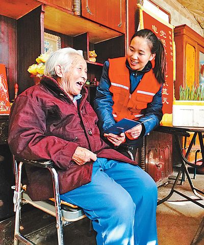 國網(wǎng)北京市電力公司開展24小時監(jiān)控,確保“煤改電”用戶溫暖過節(jié)。圖為工作人員正在順義區(qū)東水泉村村民陳淑華老人家了解采暖效果。本報記者 賀 勇攝