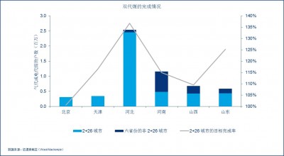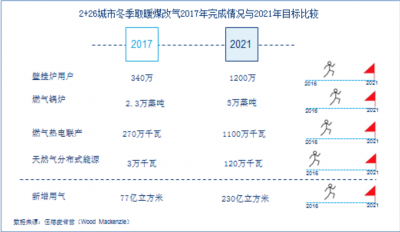 2017年3月,政府制定了“2 + 26”政策,對(duì)北京、天津以及其他26個(gè)北方城市提出了煤炭替代目標(biāo),以減少冬季取暖用煤量。