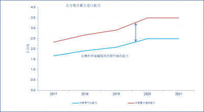 最重要的是,液化天然氣的進(jìn)口量會(huì)受到接收站能力的限制。在過(guò)去的兩個(gè)冬季我們已經(jīng)看到北方一些接收站超負(fù)荷運(yùn)行,北方冬季液化天然氣進(jìn)口能力已經(jīng)受到了接收站能力的制約。