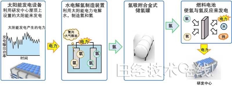 東北電力將在仙臺(tái)的研發(fā)中心設(shè)置新的太陽能發(fā)電設(shè)備和氫制造裝置。利用太陽能發(fā)電產(chǎn)生的電力來電解水,由此制造氫并存儲(chǔ)氫。然后再用由此獲得的氫作為燃料來發(fā)電,為研發(fā)中心提供電力。