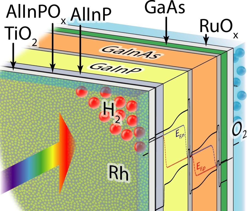 研究人員表示III-V族半導(dǎo)體的串聯(lián)太陽(yáng)能電池與銠納米顆粒及結(jié)晶二氧化鈦催化劑的組合推動(dòng)了效率的提高,聲稱通過將電池浸入水介質(zhì)中,電池可直接用于從水中形成氫,并解釋說太陽(yáng)能電池與催化劑的組合以及單片光電極簡(jiǎn)化了水的分裂。研究團(tuán)隊(duì)的MatthiasMay博士表示,晶體二氧化鈦層不僅保護(hù)了實(shí)際的太陽(yáng)能電池免受腐蝕,而且還提高了電荷傳輸。他們已經(jīng)可以將電池的使用壽命延長(zhǎng)到100小時(shí)左右,這是一個(gè)重大的進(jìn)步。