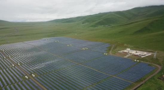 藍(lán)天白云下,遼闊的大草原上,大片大片的光伏板,微微昂頭,在高原陽光的照射下,正源源不斷地釋放著綠色能源。
