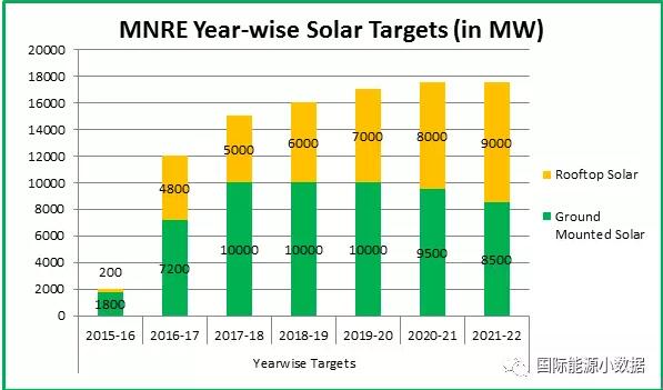 2015年印度莫迪政府制定了到2022年實現(xiàn)光伏裝機達到100吉瓦的宏偉規(guī)劃,其中公共事業(yè)級地面光伏60吉瓦,屋頂光伏40吉瓦。三年以后,印度光伏進展到底怎樣?