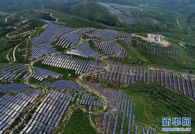 這是河北省唐山市玉田縣石嶺口光伏發(fā)電場(chǎng)(8月11日無(wú)人機(jī)拍攝)。新華社記者楊世堯攝