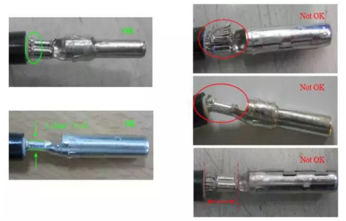 3、采用專業(yè)的剝線鉗和壓接鉗,不專業(yè)的工具造成壓接不良。比如部分銅絲剪斷,有些銅絲沒(méi)有壓接進(jìn)去,誤壓到絕緣層,壓接力量過(guò)小或者過(guò)大。