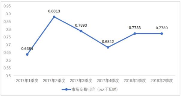 圖10 2017年-2018年2季度光伏市場交易電價(jià)走勢圖