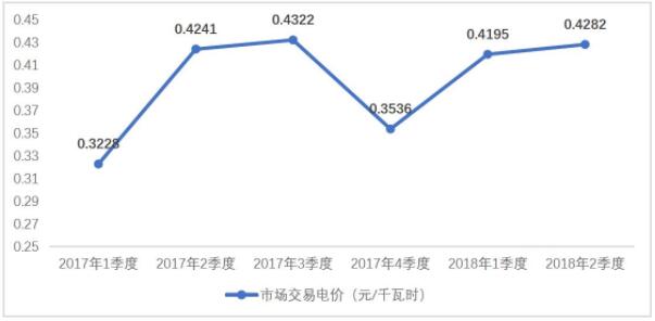 圖5 2017年-2018年2季度煤電市場交易電價(jià)走勢圖