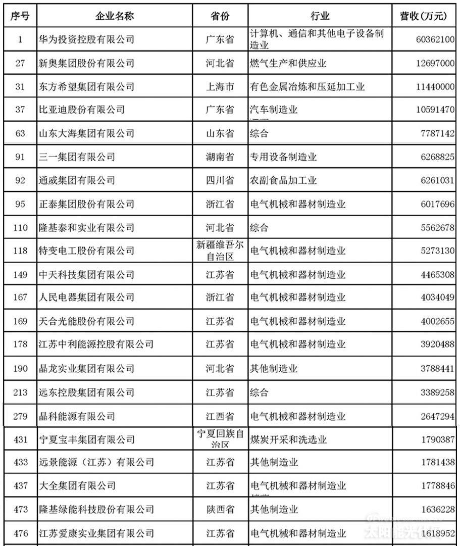 2018中國(guó)民營(yíng)企業(yè)500強(qiáng)榜單出爐 22家光伏企業(yè)榜上有名!