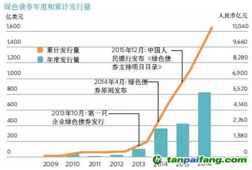 圖2:綠色債券年度和累計(jì)發(fā)行量(2009-2016)【注13】