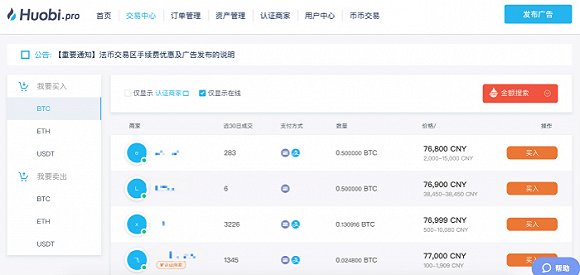 火幣網(wǎng)場(chǎng)外c2c交易界面