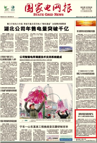 2010年12月29日,《國家電網(wǎng)報(bào)》頭版刊登了國網(wǎng)電科院發(fā)布新技術(shù)新產(chǎn)品的報(bào)道。本次國網(wǎng)電科院所展示的33項(xiàng)新技術(shù)、新產(chǎn)品將有力支撐堅(jiān)強(qiáng)智能電網(wǎng)建設(shè)。詳見:http: epaper indaa com cn html 2010-12 29