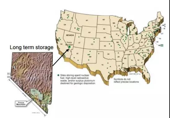 美國國家長期核廢料處置庫位于Nevada州的尤卡山。該處置庫規(guī)劃建設一直“磕磕絆絆”,總是停滯不前。為此,哥倫比亞核電廠重新設計建造了乏燃料干法貯存設施。乏燃料儲存于特殊的干桶裝置內(nèi),于新建造設施內(nèi)統(tǒng)一存放。