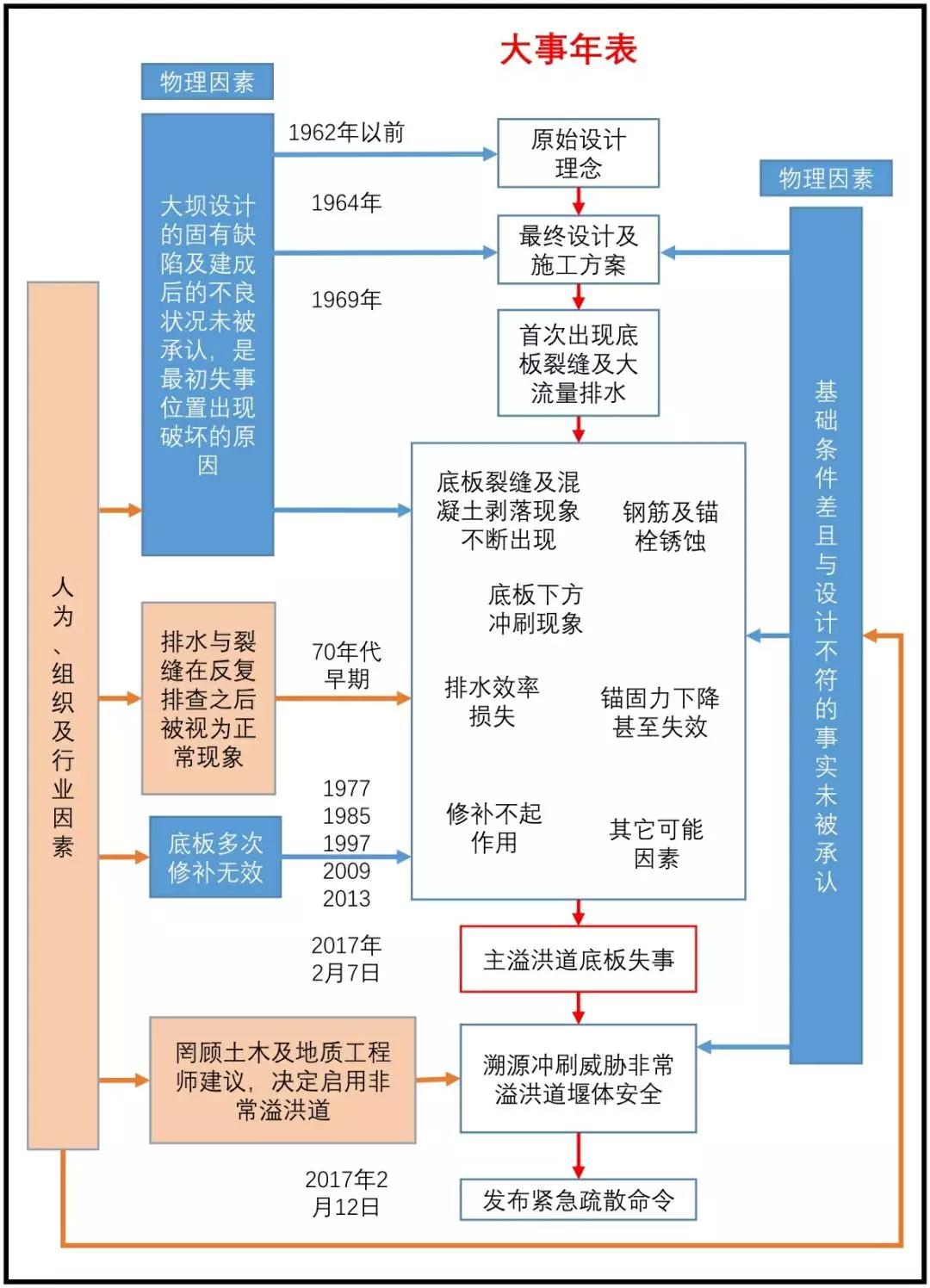 奧羅維爾大壩溢洪道事故的起因錯(cuò)綜復(fù)雜,并非一個(gè)簡(jiǎn)單的事故鏈便所導(dǎo)致,而是物理、人為、組織、行業(yè)等各種因素交織所造成,并且貫穿從工程設(shè)計(jì)到事故發(fā)生的全過程。