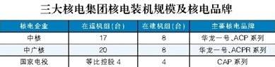 “裝機規(guī)模、研發(fā)實力、拳頭產(chǎn)品,是核電企業(yè)核心競爭力的直接體現(xiàn)。”上述業(yè)內(nèi)專家表示,“中核與中廣核幾乎平分了國內(nèi)在建在運機組份額,二者在這一點上,是有競爭力的核電運營商。但從研發(fā)能力看,三家目前的差別并不懸殊。”
