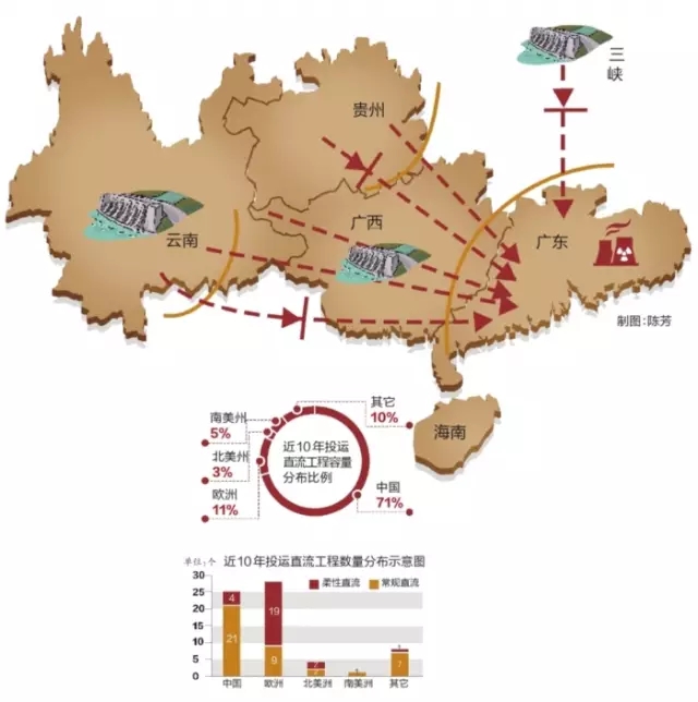 記者從研討會(huì)得知,直流輸電是大容量遠(yuǎn)距離送電的主要手段,中國(guó)是直流輸電大國(guó),過(guò)去10年全世界直流輸電傳輸功率達(dá)150吉瓦,而中國(guó)直流輸電工程的投運(yùn)數(shù)量和累計(jì)容量居世界第一位,已投運(yùn)25條直流工程(常規(guī)直流21條、柔性直流4條),占世界容量的10%。