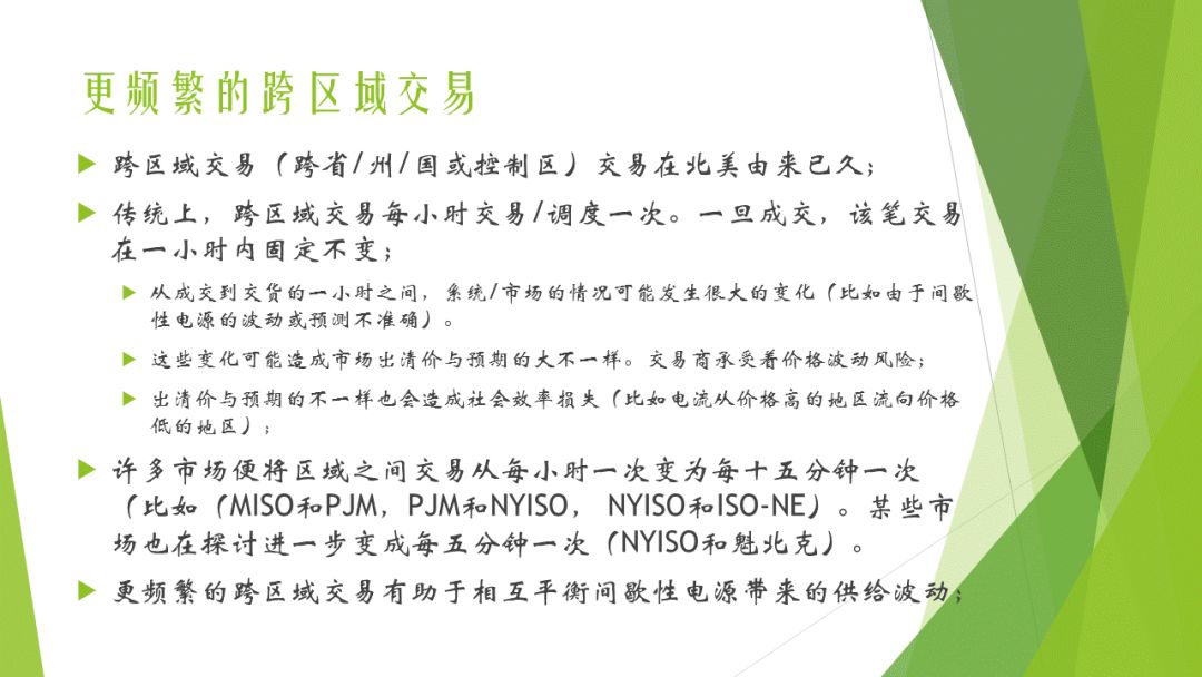 為了應(yīng)對這個(gè)問題,可以采用更頻發(fā)的跨區(qū)交易的方式。北美已經(jīng)由多個(gè)市場將區(qū)域之間的交易從每小時(shí)一次變?yōu)槭宸昼娨淮?,甚至在探?分鐘一次(NYISO和魁北克)。