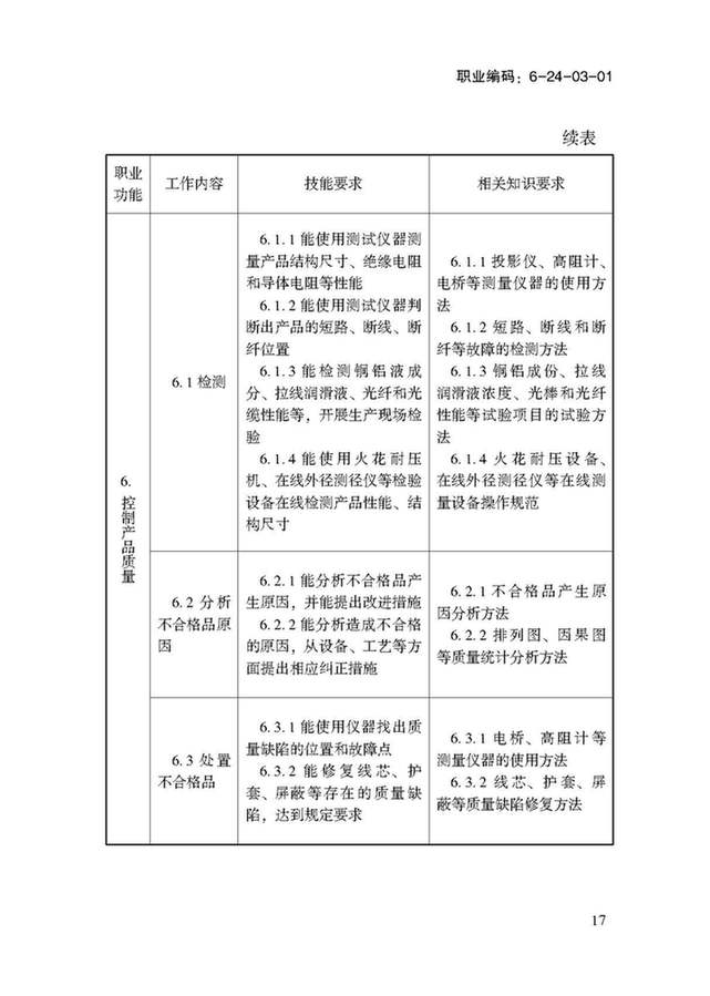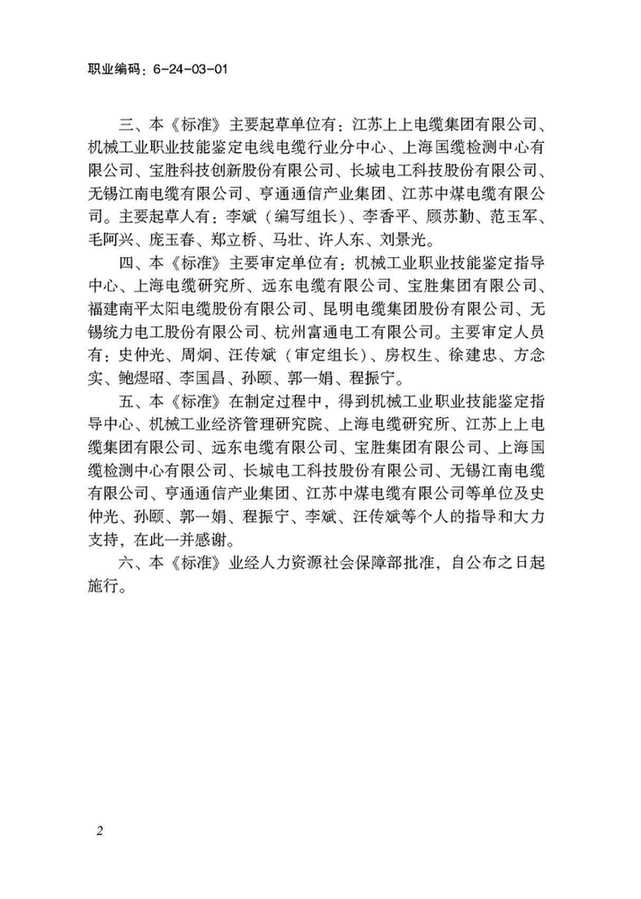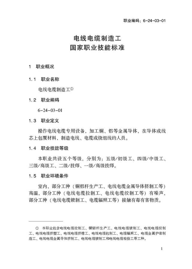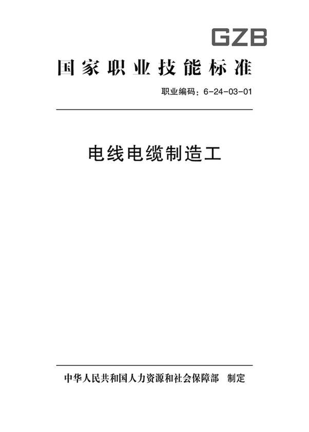人力資源和社會保障部:電線電纜制造工國家職業(yè)技能標準