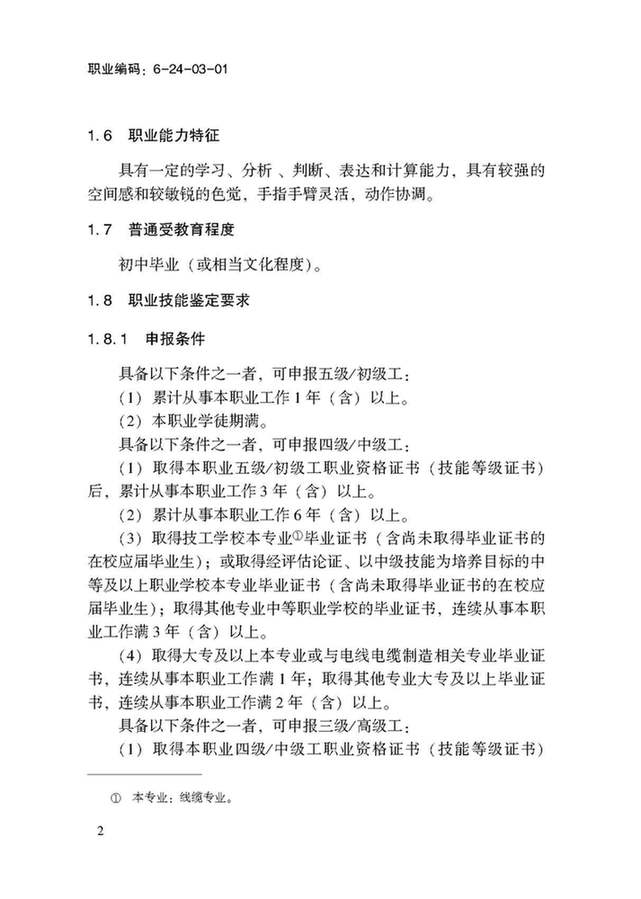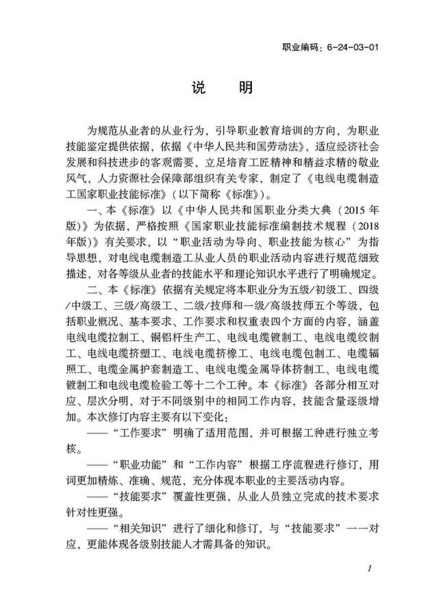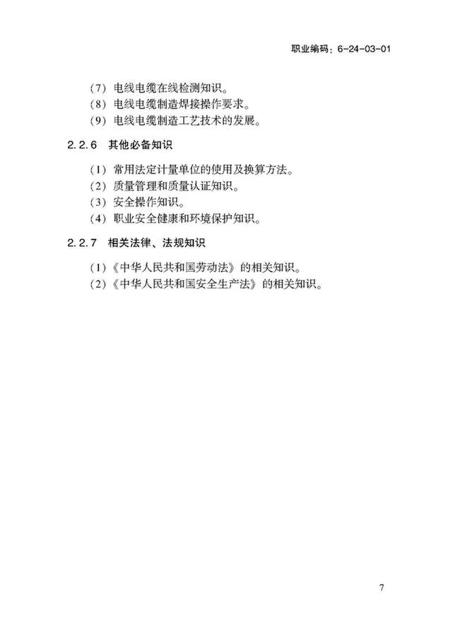 以下部分為:國家職業(yè)技能標準——電線電纜制造工