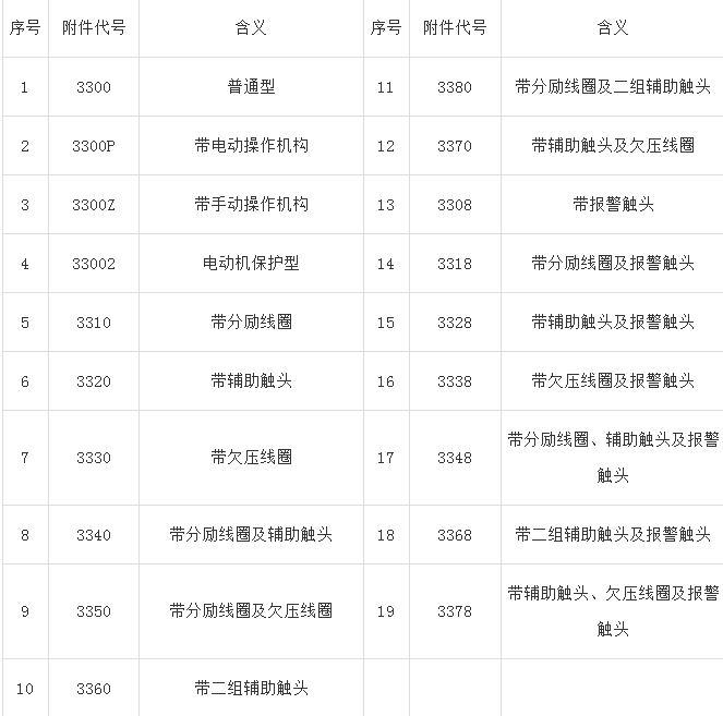 ⑤、了解低壓塑殼斷路器附件的意義,如下表: