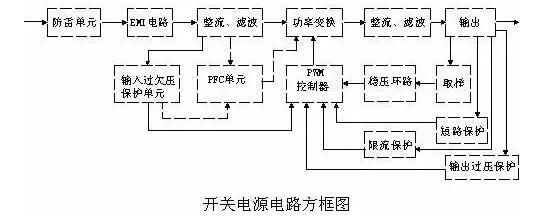 開關(guān)電源的電路組成方框圖如下: