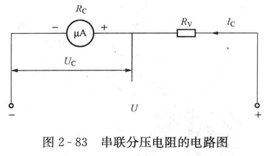 磁電系直流電壓表是由磁電系測量機(jī)構(gòu)與分壓電阻串聯(lián)組成的,見圖2-83,根據(jù)歐姆定