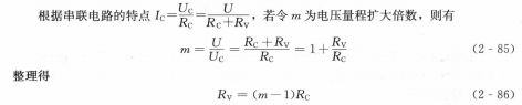 上式說明,要使電壓表量程擴(kuò)大m倍,需要串聯(lián)的分壓電阻應(yīng)是涮量機(jī)構(gòu)內(nèi)阻Rc的(m-1)倍。