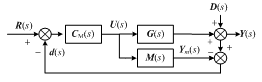 圖2為內??刂平Y構框圖。圖中:R(s)為系統(tǒng)輸入信號、Y(s)為系統(tǒng)輸出信號,CM(s)為內??刂破?,G(s)為控制對象,M(s)為控制對象內模,D(s)為擾動傳遞函數(shù),d(s)為系統(tǒng)輸出Y(s)與內模輸出Ym(s)之差。