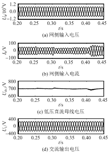 而MMC-SST的中壓直流側母線電壓和交流輸出電壓始終保持穩(wěn)定狀態(tài),為輸出端口連接的分布式電源、交直流負荷提供了可靠的并網(wǎng)接口。