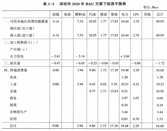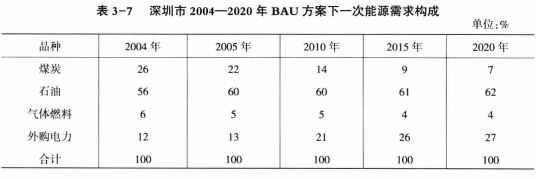 3.3.2 深圳市BAU方案下的一次能源供應(yīng)