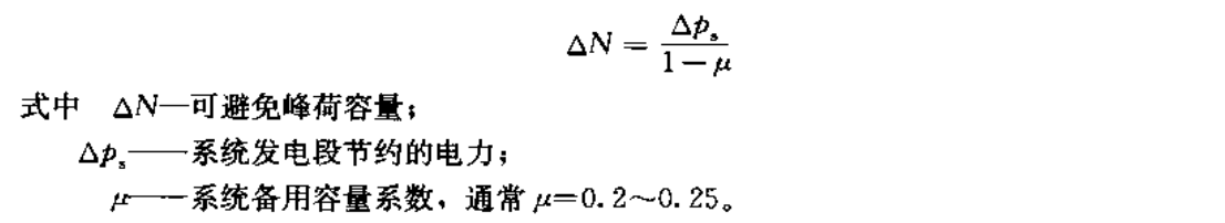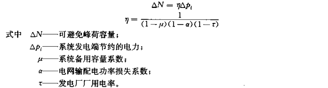 可避免峰荷容量是指由于節(jié)電在電網(wǎng)負荷峰期可避免的發(fā)電容量,即電網(wǎng)高峰負荷時避免的系統(tǒng)裴機容量,它大于可避免的發(fā)電工作容量。