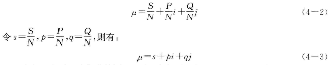 根據(jù)集對(duì)理論勢(shì)的定義,聯(lián)系度u=s+ pi +qj中的q≠0時(shí),s與q的比值為所論集對(duì)在特定問(wèn)題背景下的集對(duì)勢(shì)Shi,即Shi=s/q,當(dāng)s=q時(shí),成為均勢(shì),當(dāng)s>q時(shí),稱為同勢(shì),當(dāng)s u=H+Mi+Lj (4-12)