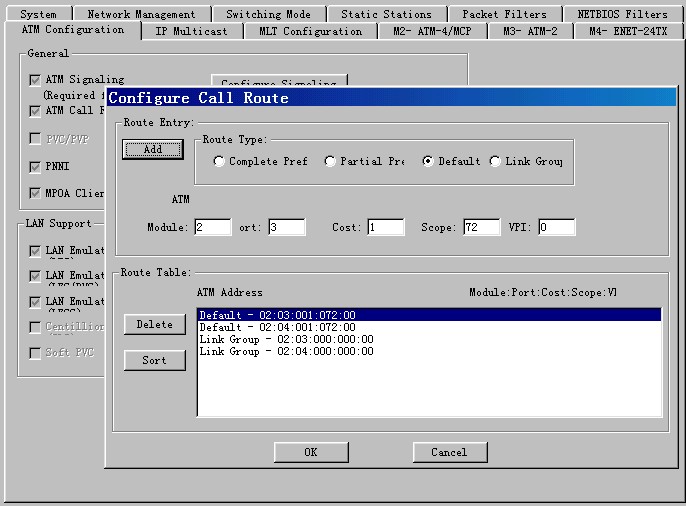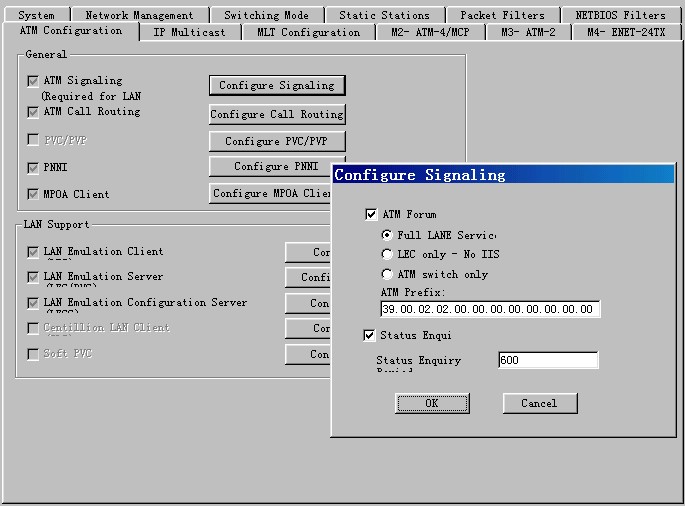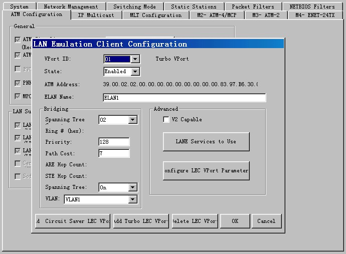 解決了以上兩個問題,剩下的就是交換機及客戶端的配制。在ATM這一層,考慮到只設(shè)一個網(wǎng)段,為保證在路由模板故障一處理完,就能馬上恢復(fù),所以在配制ATM時,只把5000BH上的各個端口劃到VLAN1中,以此來保證恢復(fù)時的快速性。以下是配制圖例。