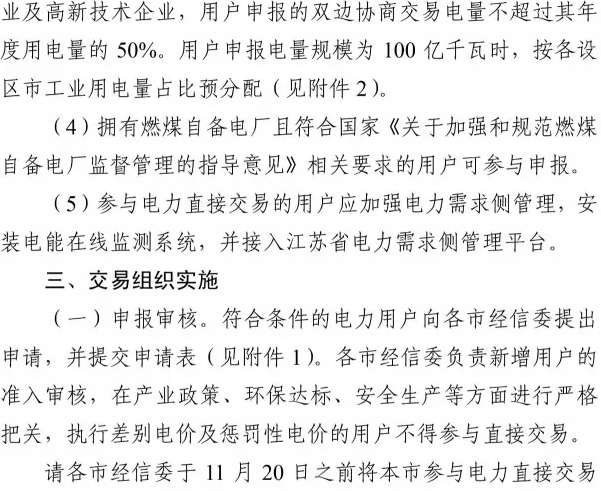 新增用戶申報(bào)的雙邊協(xié)商交易電量不超過其年度用電量的50%。