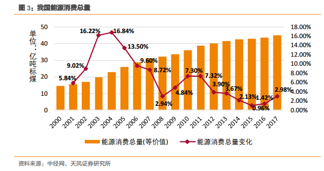 2018年4月11日,電力規(guī)劃設(shè)計(jì)總院發(fā)布的《中國(guó)能源發(fā)展報(bào)告2017》預(yù)計(jì),2018年我國(guó)能源消費(fèi)總量呈低速增長(zhǎng),生產(chǎn)供應(yīng)總體穩(wěn)中有升。《報(bào)告》認(rèn)為,根據(jù)經(jīng)濟(jì)發(fā)展?fàn)顩r、各行業(yè)發(fā)展前景和用能需求,2018年我國(guó)能源消費(fèi)將延續(xù)消費(fèi)結(jié)構(gòu)清潔化、高效化趨勢(shì),消費(fèi)總量呈低速增長(zhǎng),預(yù)計(jì)約45.7億噸標(biāo)準(zhǔn)煤。其中,非化石能源和天然氣仍是拉動(dòng)能源消費(fèi)增長(zhǎng)的主導(dǎo)力量,占一次能源消費(fèi)的比重繼續(xù)提高,天然氣消費(fèi)量約2640億立方米;煤炭消費(fèi)量將略有減少,約在38.5億噸,占一次能源消費(fèi)比重繼續(xù)下降;石油消費(fèi)量約6億噸,占一次能源消費(fèi)比重保持穩(wěn)定。從生產(chǎn)端來(lái)看,預(yù)計(jì)2018年一次能源生產(chǎn)總量約36.7億噸標(biāo)準(zhǔn)煤,其中煤炭36.6億噸,石油1.91億噸,天然氣1560億立方米,一次電力2.1萬(wàn)億千瓦時(shí)?!秷?bào)告》顯示,2017年我國(guó)能源生產(chǎn)總量達(dá)到35.9億噸標(biāo)準(zhǔn)煤。