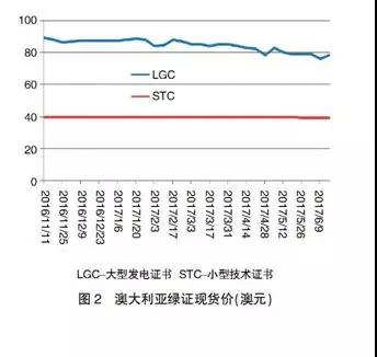 各國綠證交易價格主要受證書供需形勢影響,同時也與可再生能源發(fā)電技術(shù)類型、季節(jié)波動、監(jiān)管懲罰強度等多種因素相關(guān),具有較大的差異性和波動性。從美國新英格蘭地區(qū)各州的綠證現(xiàn)貨價格來看,馬薩諸塞、羅得島、康乃狄克和新罕布什爾州的綠證供應(yīng)在2013~2015年期間供應(yīng)偏緊,單位綠證的交易價格達50~60美元,而同期的緬因州由于生物質(zhì)發(fā)電計入綠證核發(fā)范圍、綠證供應(yīng)顯著高于需求,價格降至10美元以下。澳大利亞大型發(fā)電技術(shù)證書價格因供應(yīng)增加,自2016年下半年以來震蕩下行,但截至2017年6月仍高于75澳元;小型技術(shù)證書則主要受限價、罰款等因素影響,一直保持在最高限定價格40澳元附近。此外,從部分國家和地區(qū)的交易市場來看,風電由于成本和價格較低在早期時是綠證交易主體,太陽能發(fā)電由于價格快速下降、有取代風電成為交易主體的趨勢(見圖1、圖2)。