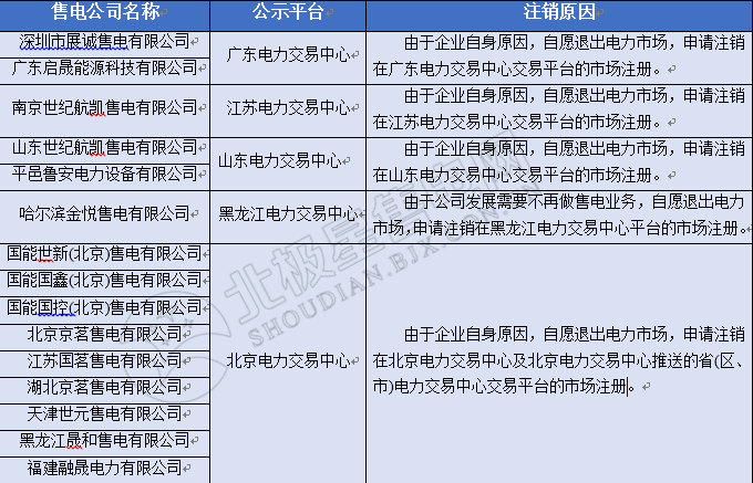 以下是最近(2018年)交易中心公布的注銷的售電公司名單: