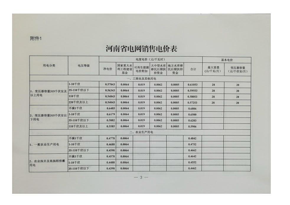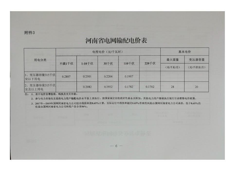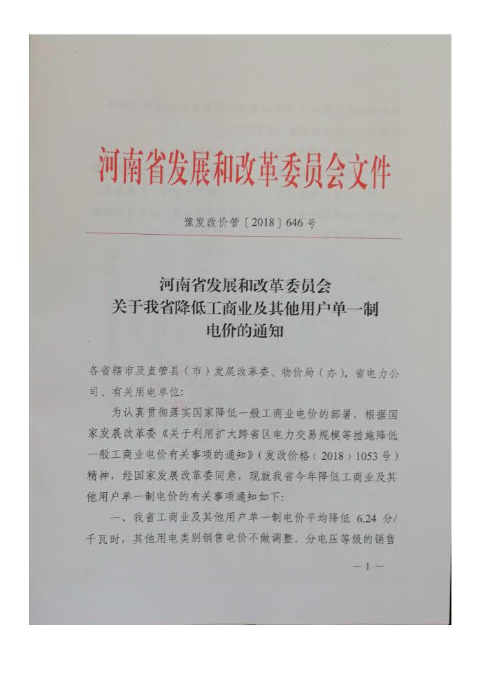 河南省發(fā)展和改革委員會關(guān)于我省降低工商業(yè)及其他用戶單一制電價的通知