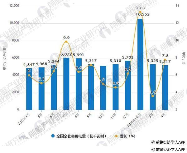 2017-2018年4月全國全社會(huì)用電量及增長情況