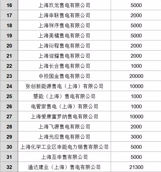 現(xiàn)已公布的上海售電公司名單如下,絕大多數(shù)公司注冊(cè)資本在1000萬(wàn)元以上。
