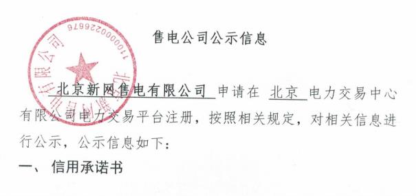 北京電力交易中心關(guān)于公示受理注冊的售電公司相關(guān)信息的公告