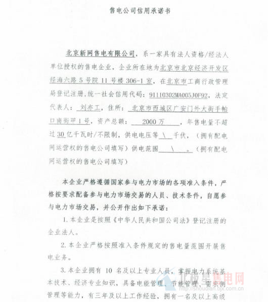 北京新網(wǎng)售電有限公司