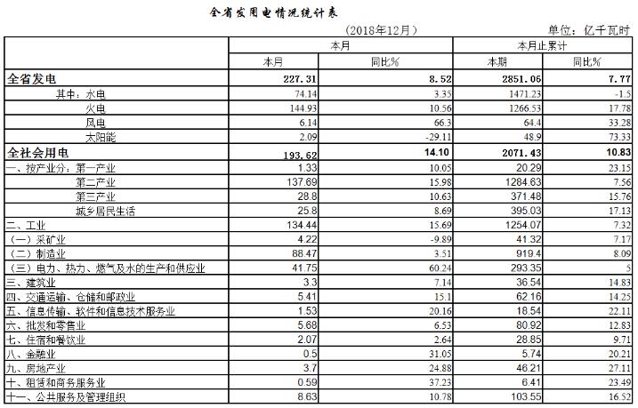 截止年底,全省全口徑裝機(jī)容量7401 05萬千瓦,同比增長(zhǎng)3 88%;全年發(fā)電量2851 06億千瓦時(shí),增長(zhǎng)7 77%;全社會(huì)用電量2071 43億千瓦時(shí),增長(zhǎng)10 83%,其中工業(yè)用電量1254 07億千瓦時(shí),增長(zhǎng)7 32%。