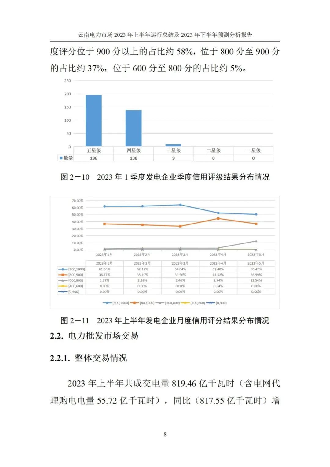云南電力市場2023年上半年運(yùn)行總結(jié)及2023年下半年預(yù)測分析報(bào)告:上半年共成交電量819.46億千瓦時(shí)